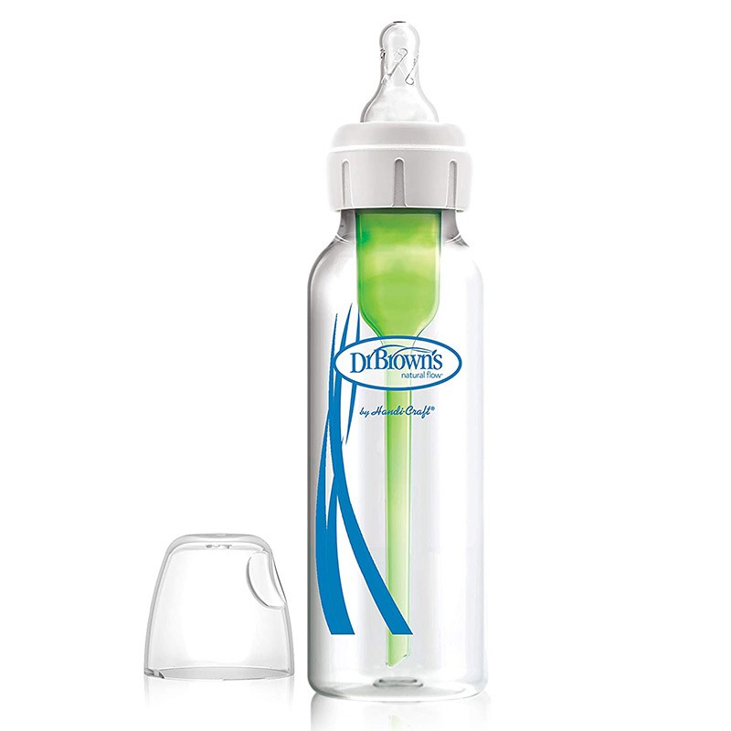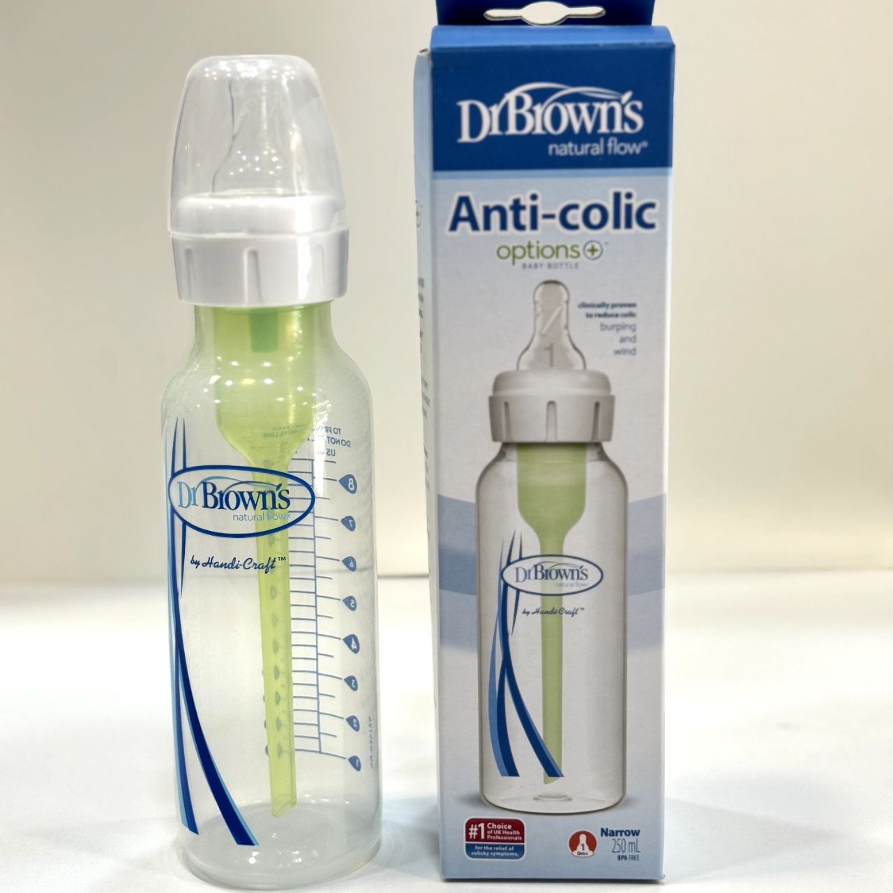 شیشه شیر طلقی دکتر براون حجم ۲۵۰ میلی لیتر نیز مانند تمامی محصولات باکیفیت این برند معتبر آمریکایی فاقد BPA و مواد مضر شیمیایی می باشد تا با خیالی آسوده بتوان آن را در فرآیند تغذیه کودک به کار گرفت. نکته جالب توجه این محصول تعبیه یک لوله آنتی کولیک است که احتمال هر گونه دل درد و نفخ کودک را از میان می برد. این محصول با حجم ۲۵۰ میلی لیتر دارای درجه بندی و درب محافظ می باشد.