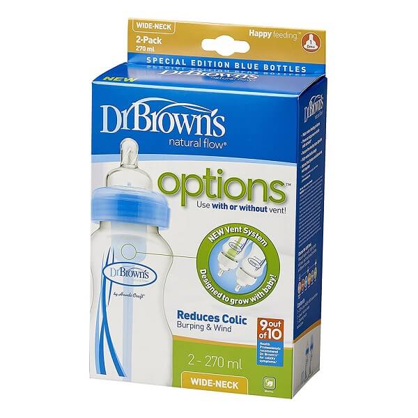این شیشه شیر در حجم ۲۷۰ میلی لیتر بوده و دو عدد می باشد و مناسب استفاده از بدو تولد نیز هست.لازم به ذکر می باشد که این شیشه شیر فاقد مواد شیمایی و BPA بوده و شما بدون هیچ نگرانی از سلامت کودک خود می توانید این محصول را مورد استفاده قرار دهید.شرکت دکتر براون همه محصولات خود را با کیفیت بسیار عالی و درجه یک طراحی و ساخته است که همین امر سبب شده این برند و محصولاتش مورد توجه و در صدر انتخاب والدین دقیق و هوشمند و همچنین حساس به نوزاد خود قرار بگیرد