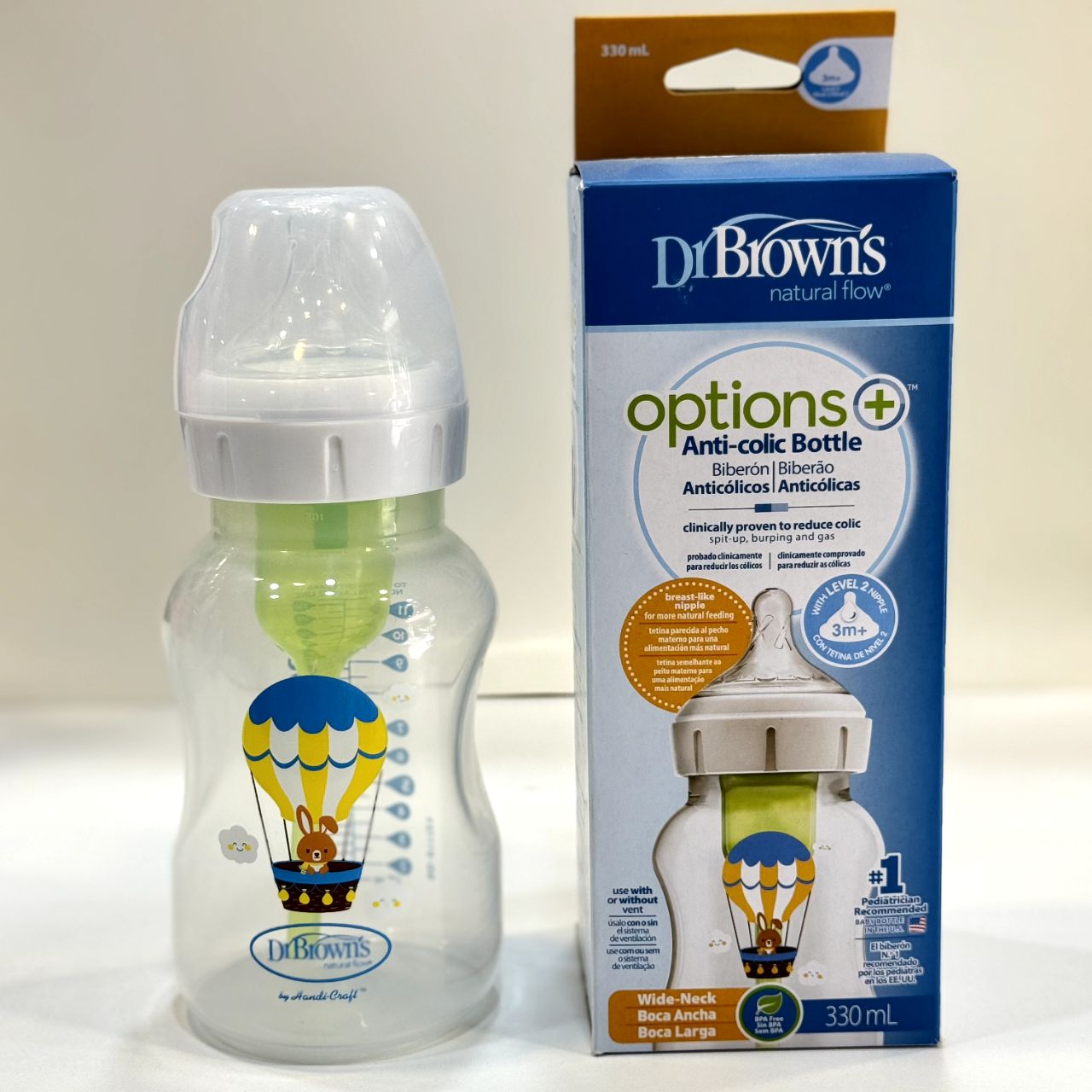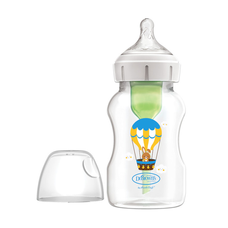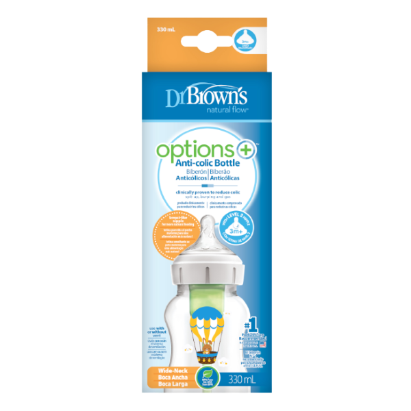 شیشه شیر ۳۳۰ میل پهن آپشن پلاس دکتر براون با جنس بدنه پروپلین و سری سیلیکونی می تواند انتخابی از هر لحاظ منطقی به نظر آید.این محصول با داشتن لوله آنتی کولیک در خود از نفخ و کولیک معده جلوگیری می کند، با وجود این لوله احتمال هرگونه دل درد و نفخ در نوزاد از بین می رود. شیشه شیر دکتر براون ۳۳۰ میل طلقی عریض نسبت به شیشه های معمولی این برند کمی عریض تر است. میزان تغذیه نوزاد با روند رشد او افزایش پیدا می کند، بنابراین شیشه های کوچک قبلی دیگر جوابگوی نیاز نوزاد نبوده و به مرور او را کلافه می کند. هم چنین طراحی گرد سری این سرشیشه ها به این منظور صورت گرفته تا نوزاد هیچ گونه تفاوتی بین آن و سینه مادر احساس نکند. جنس بدنه شیشه شیر دکتر براون ۳۳۰ میل طلقی عریض دکتر براون به گونه ای است که مواد مغذی شیر را تا ۲۰ دقیقه در خود حفظ می کنند و مانع از جذب این ویتامین ها و مواد مفید به بدنه شیشه می شوند. شیشه شیرهای آپشن پلاس دکتر بروان با ایجاد تغییراتی نسبت به شیشه شیرهای آپشن جدید ترین تولید برند معتبر دکتر براون هستند. این تغییرات شامل تغییر در فرم سرشیشه به حالت پهن جهت طبیعی تر شدن و شبیه ترین حالت به سینه مادر، تغییر در فرم درب و درپوش شیشه شیر و امکان استفاده از شیشه شیر بدون نی داخلی می باشد.