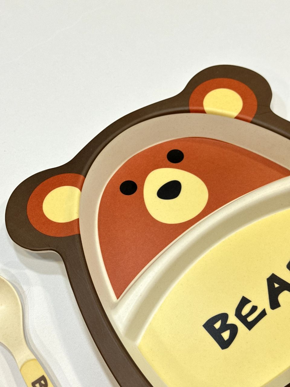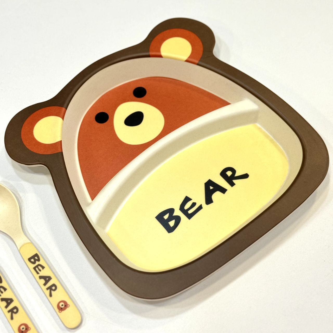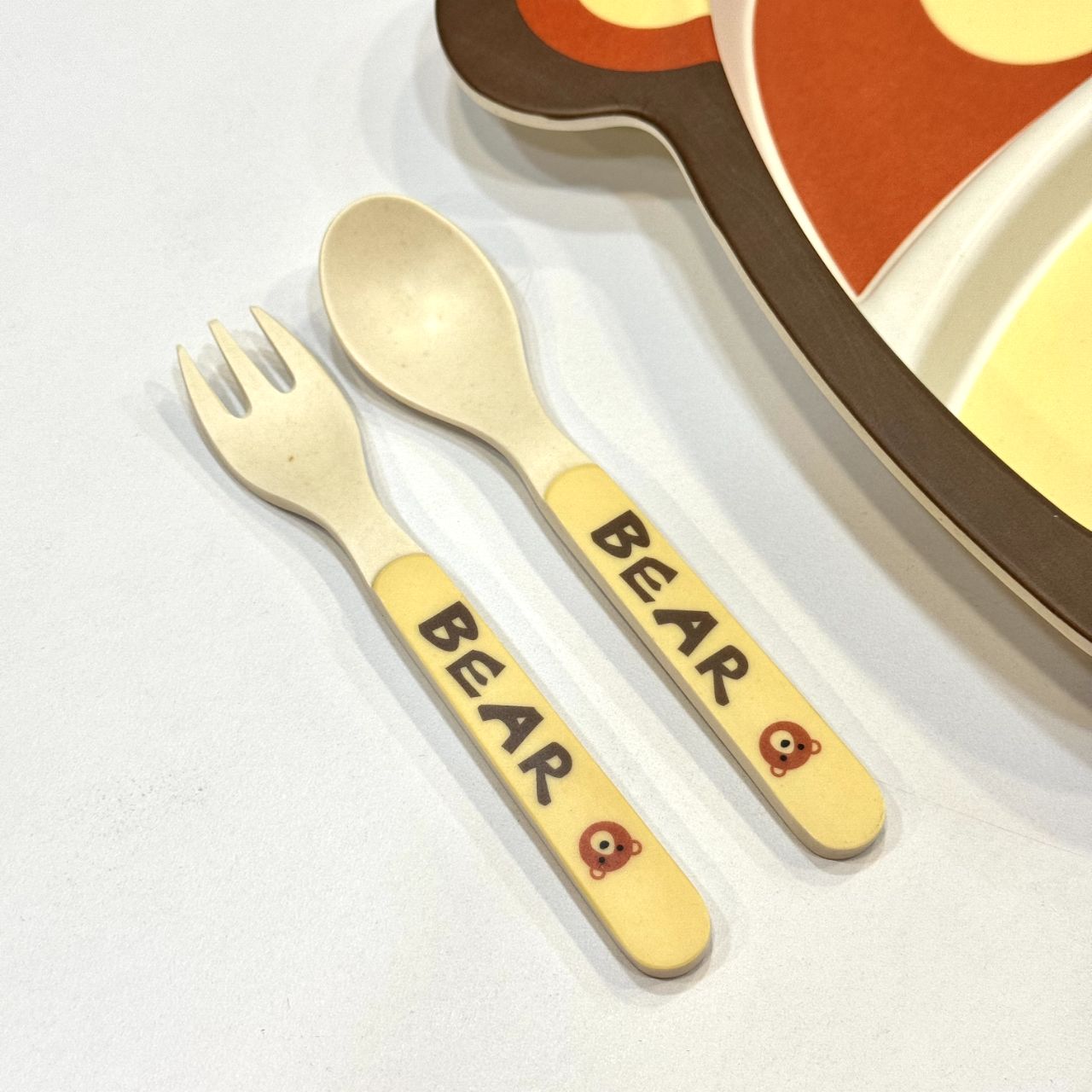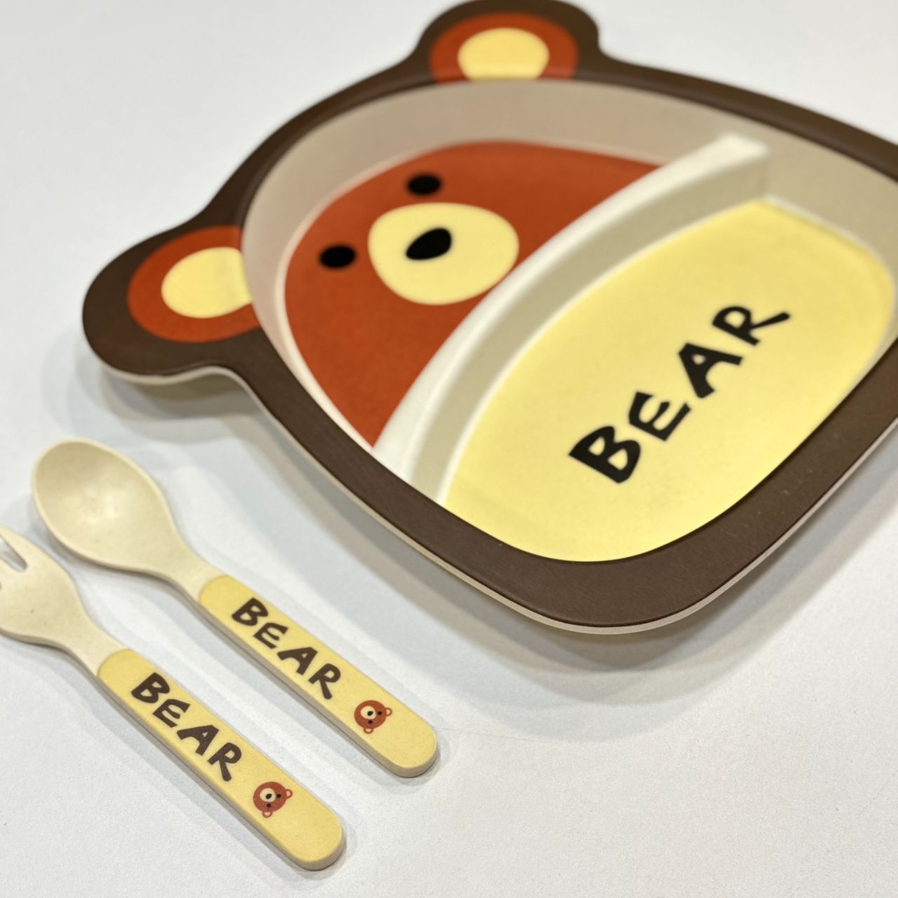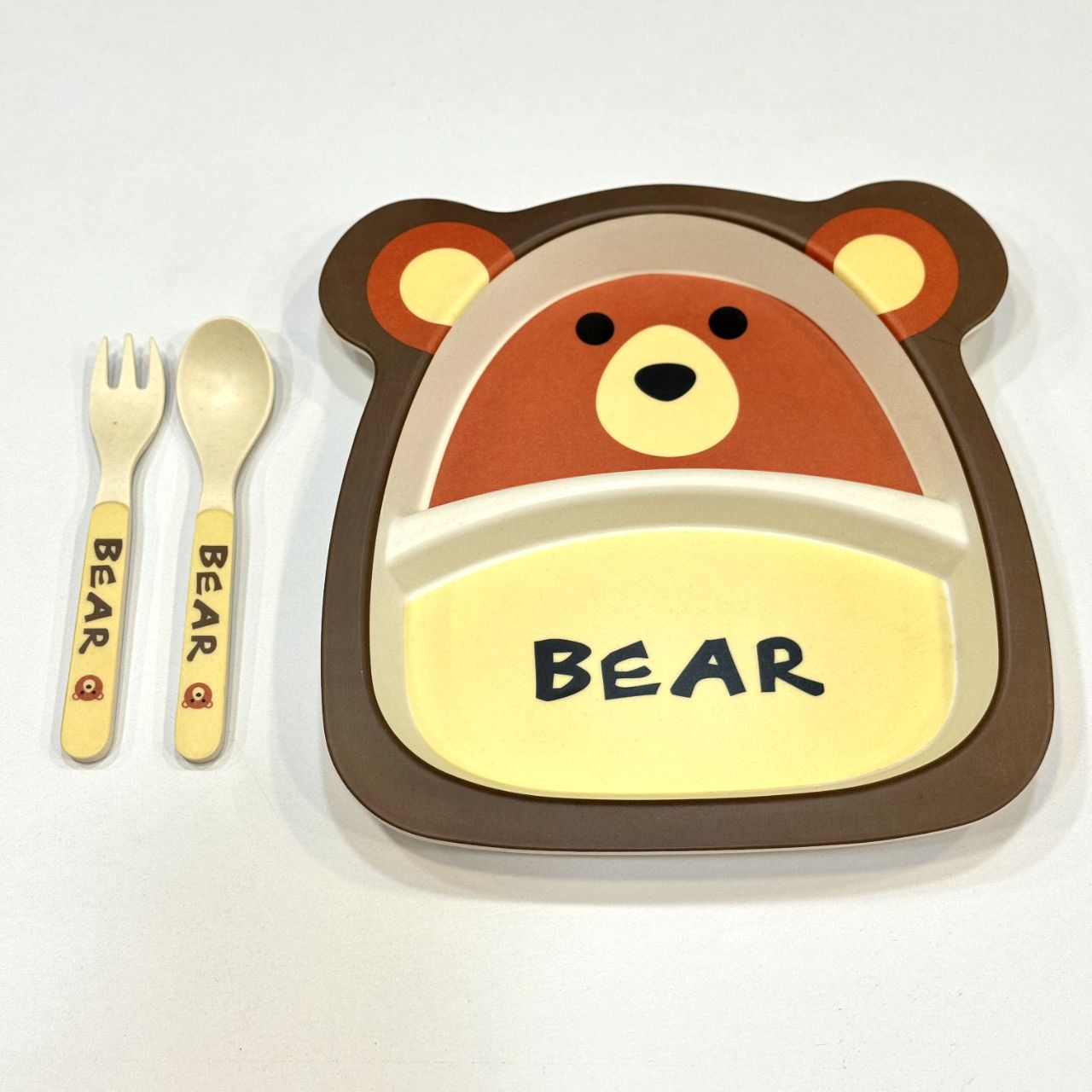ست غذاخوری ۳ تیکه بامبو شامل بشقاب تقسیم قاشق و چنگال