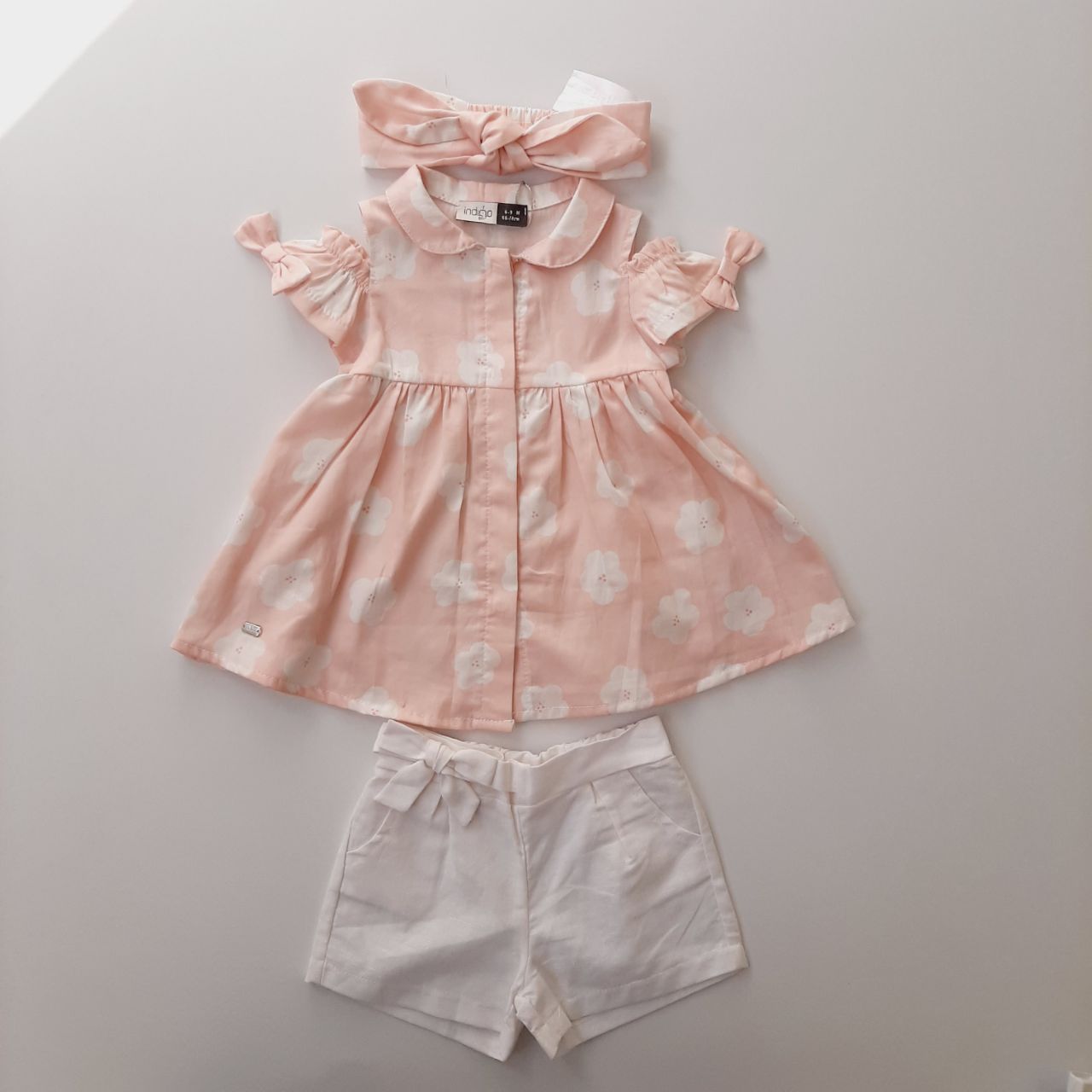 ست تیشرت شلوارک بهمراه هدسر ایندیگو indigo ست مجلسی فوق العاده کیفیت کار از لحاظ پارچه و دوخت عالی با طراحی زیبا و بروز