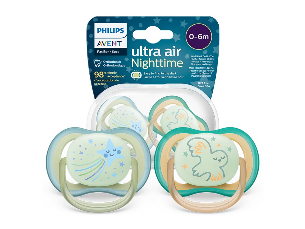 پستانک ارتودنسی بادامی دوتایی ۶تا۱۸ ماهگی شبرنگی الترا ایر فیلیپس اونت philips avent کدscf376/13