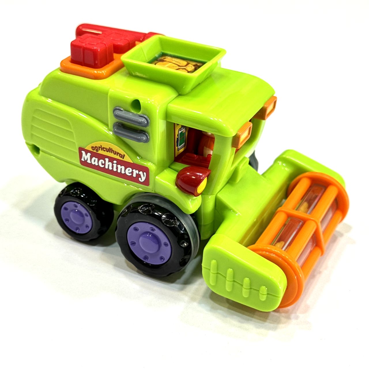 ماشین کمباین سبز رنگ غلتکی در جلو دارد که با راه رفتن ماشین غلتک می چرخد. همچنین دکمه های بالایی فشرده شده بطوریکه زدن یک دکمه باعث پریدن دکمه ی دیگر می شود.