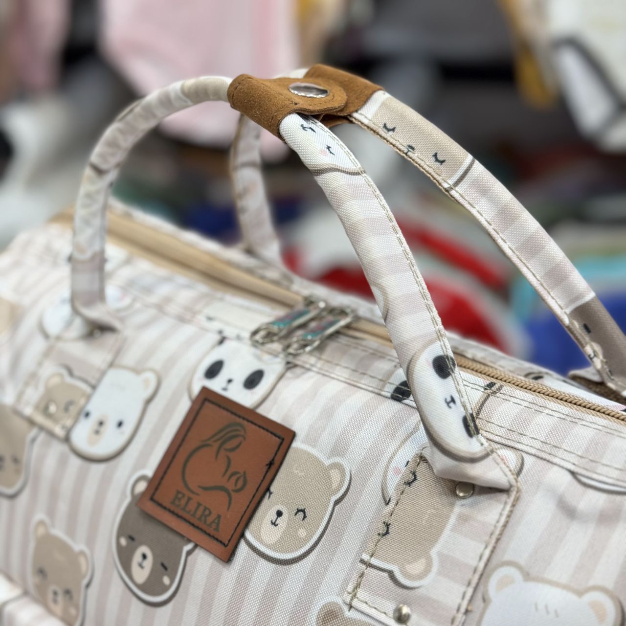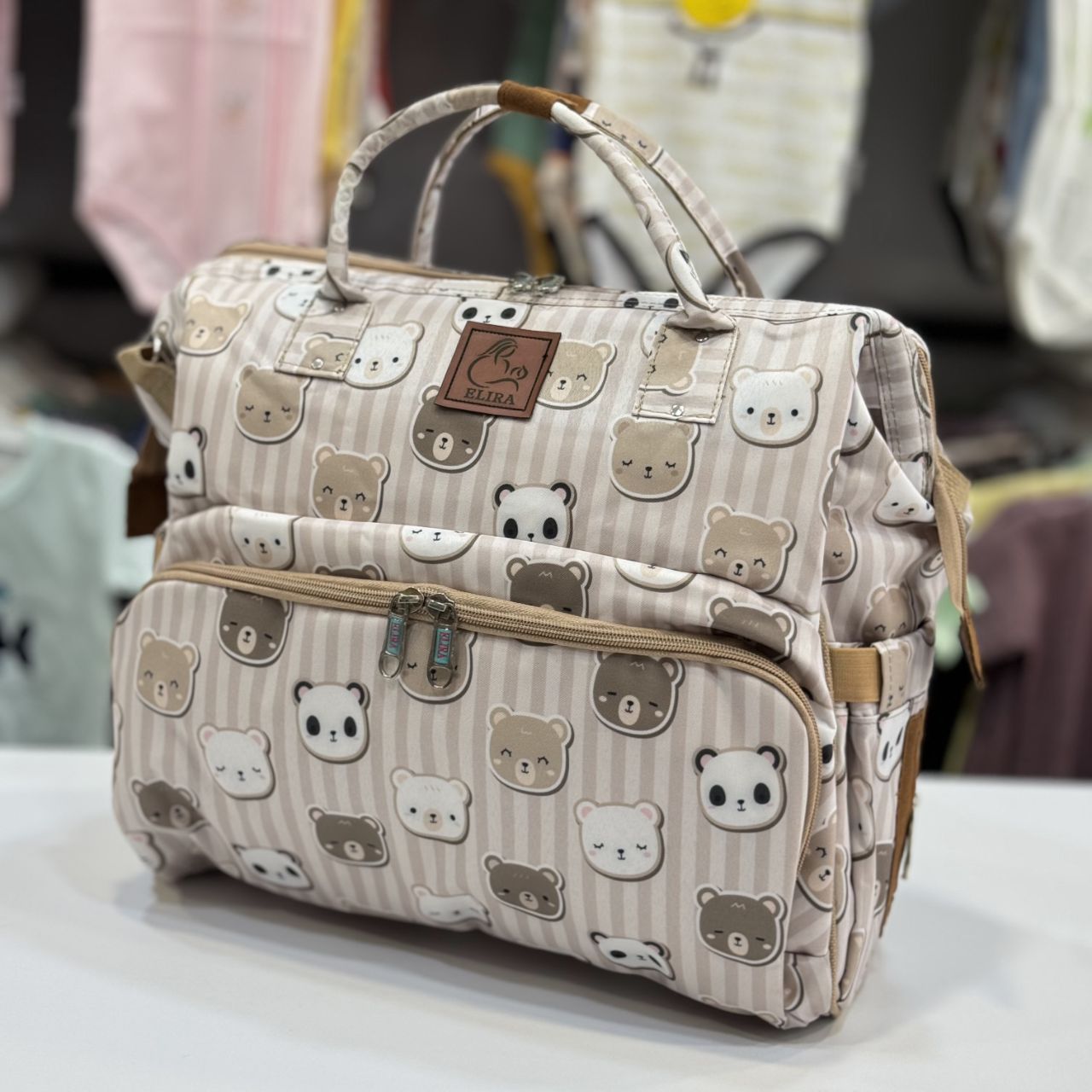 کیف(ساک) لوازم مادر الیرا elira مدل دوشی طرح خرس قهوه ای