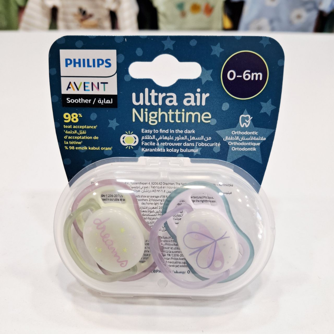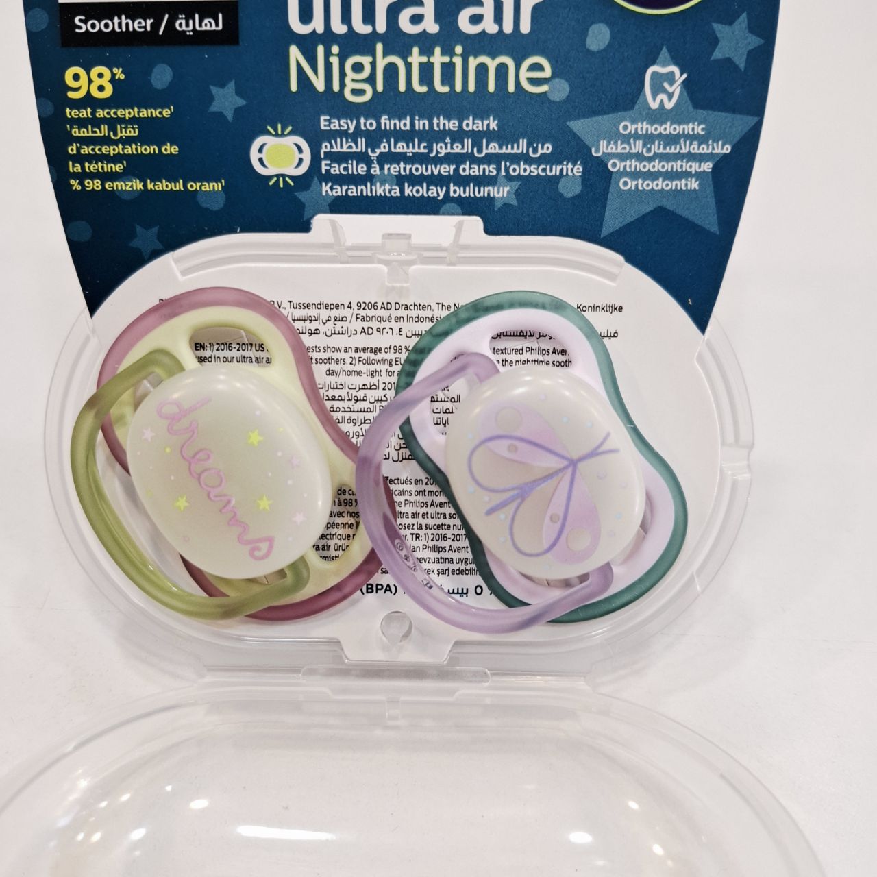 پستانک ارتودنسی بادامی دوتایی ۶تا۱۸ ماهگی شبرنگی الترا ایر فیلیپس اونت philips avent کدscf376/13