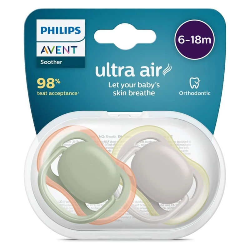 پستانک ارتودنسی بادامی دوتایی ۶تا۱۸ ماهگی الترا ایر فیلیپس اونت philips avent کد scf080/۸۰