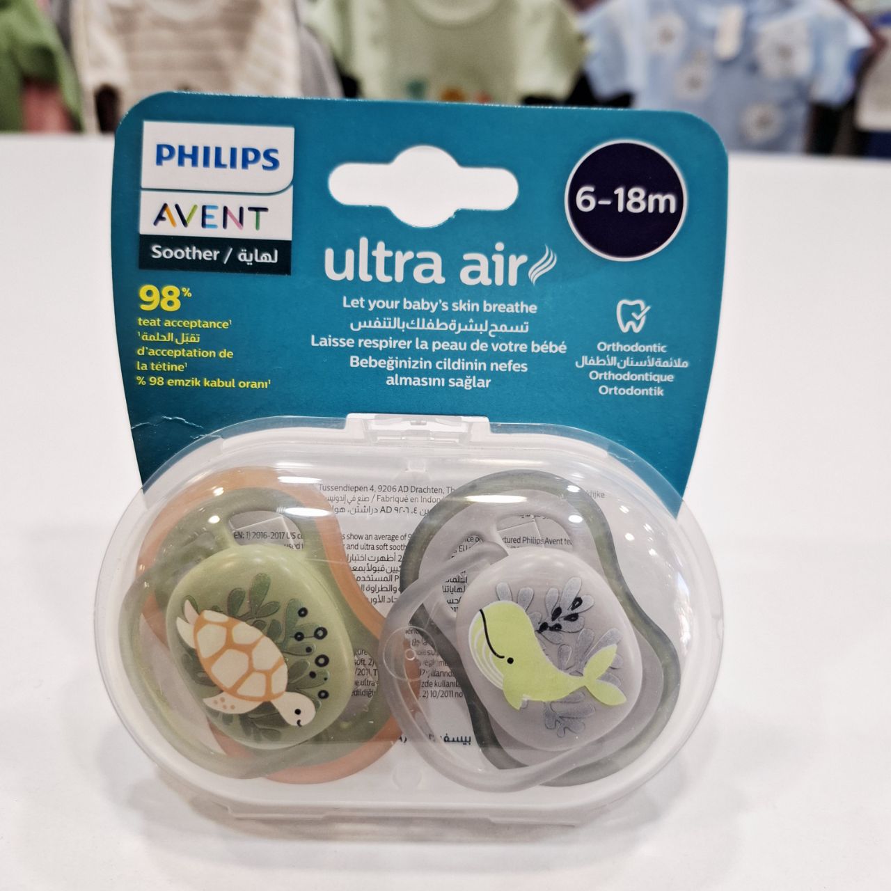 پستانک ارتودنسی بادامی دوتایی ۶تا۱۸ ماهگی الترا ایر فیلیپس اونت philips avent کد scf080/۸۰