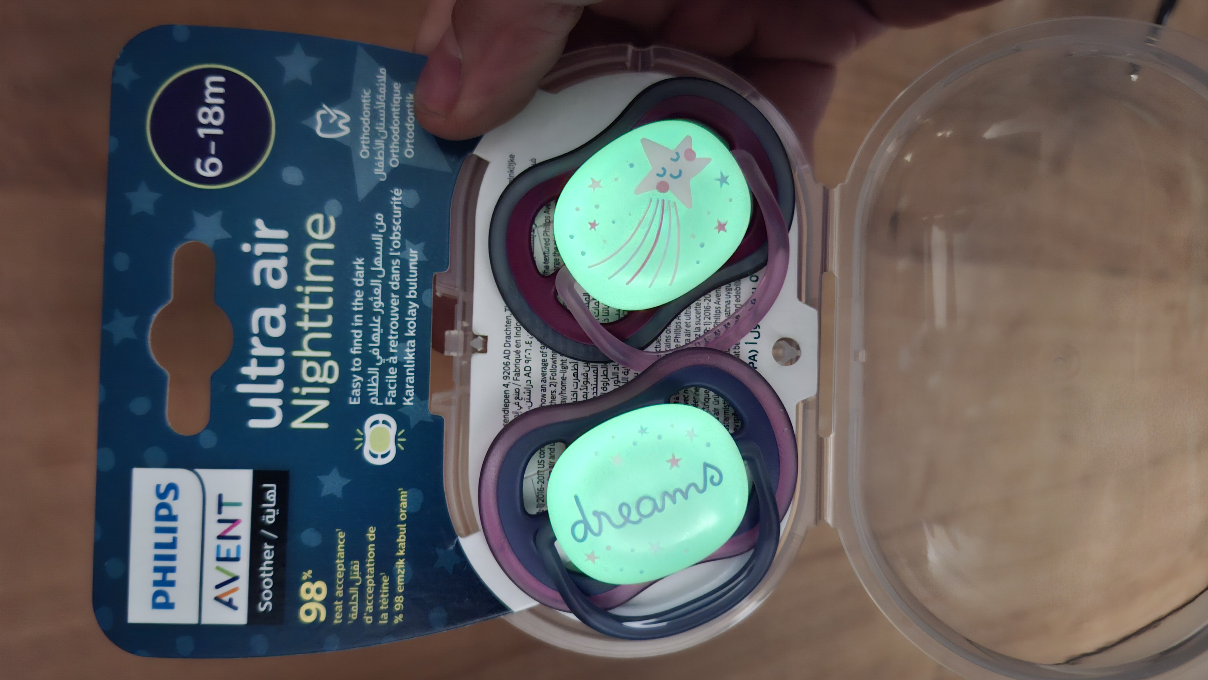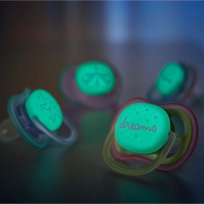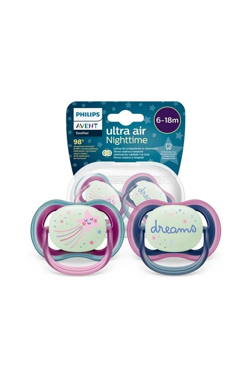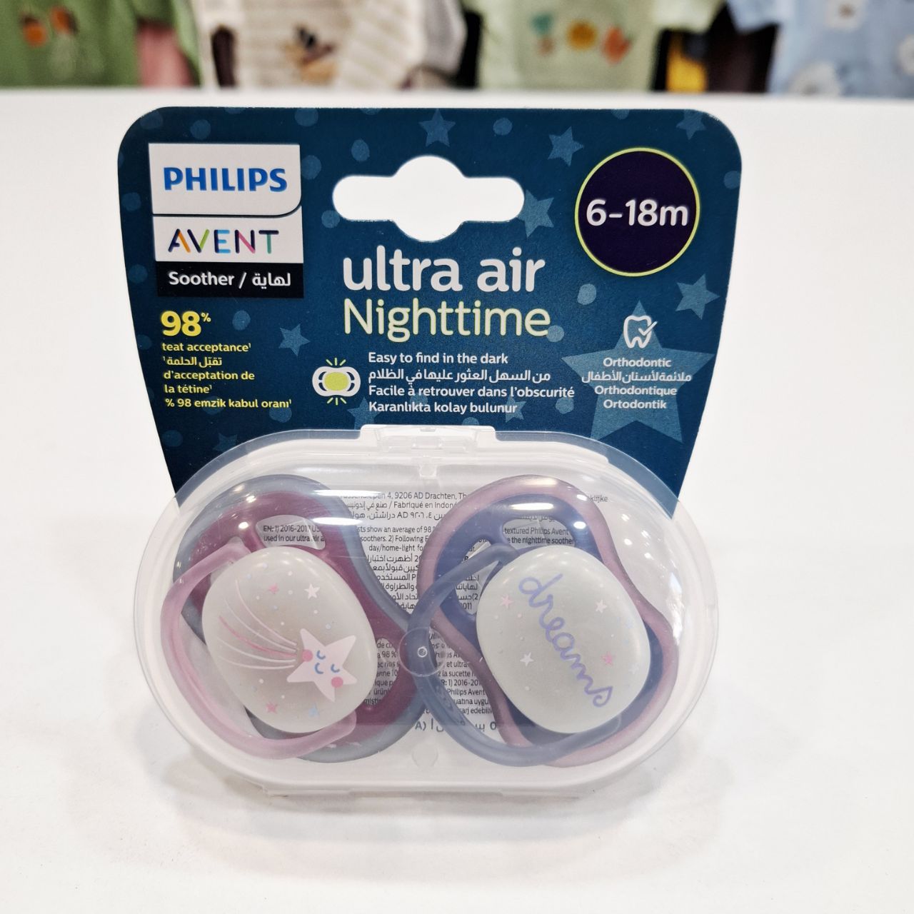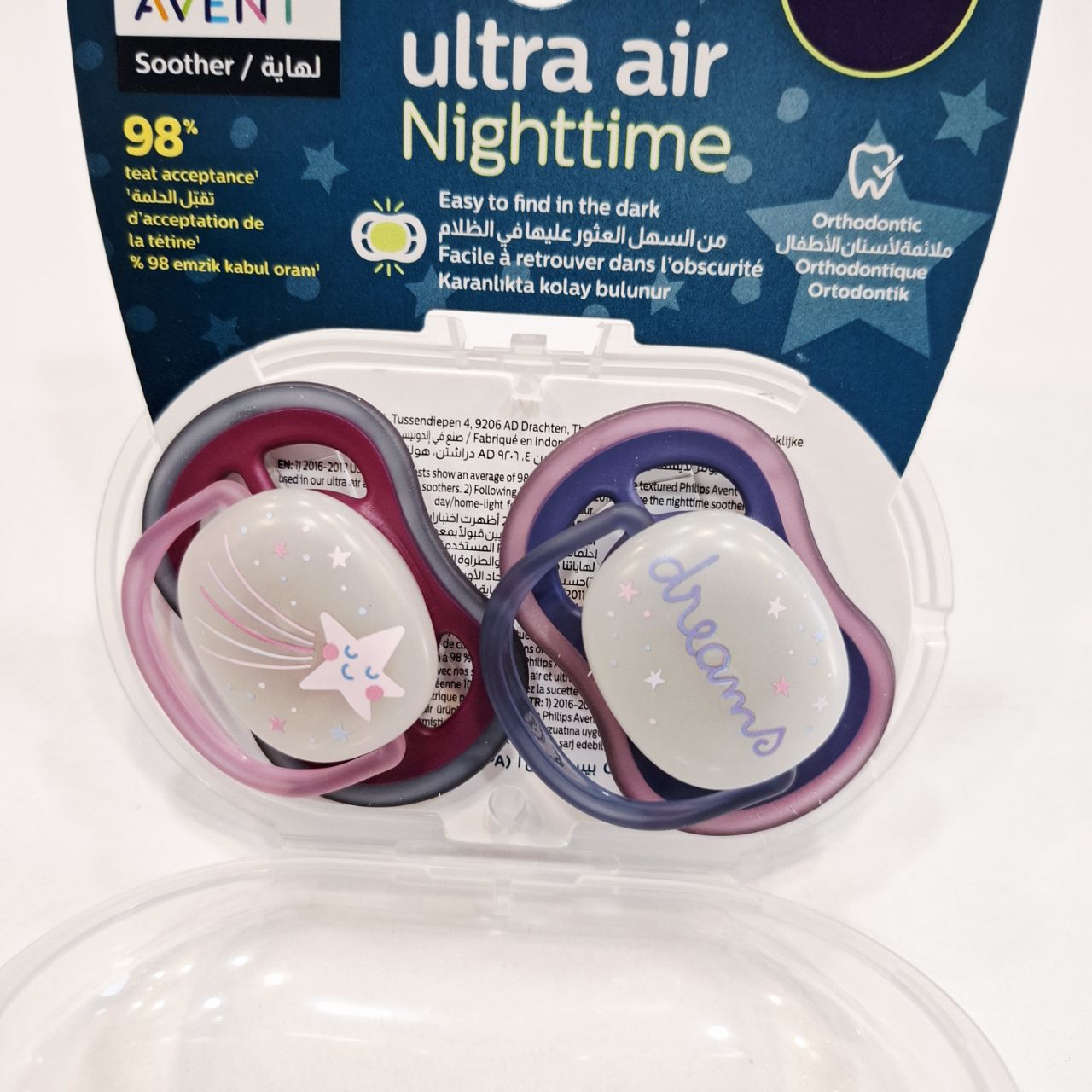 پستانک ارتودنسی بادامی دوتایی ۶تا۱۸ ماهگی شبرنگی الترا ایر فیلیپس اونت philips avent کدscf376/13
