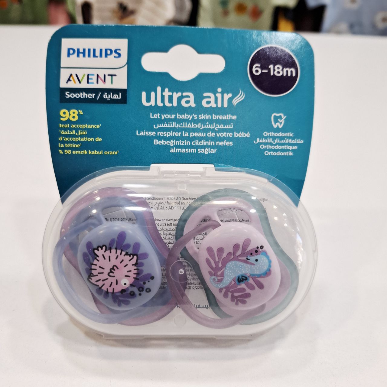 پستانک ارتودنسی بادامی دوتایی ۶تا۱۸ ماهگی الترا ایر فیلیپس اونت philips avent کد scf080/۸۰