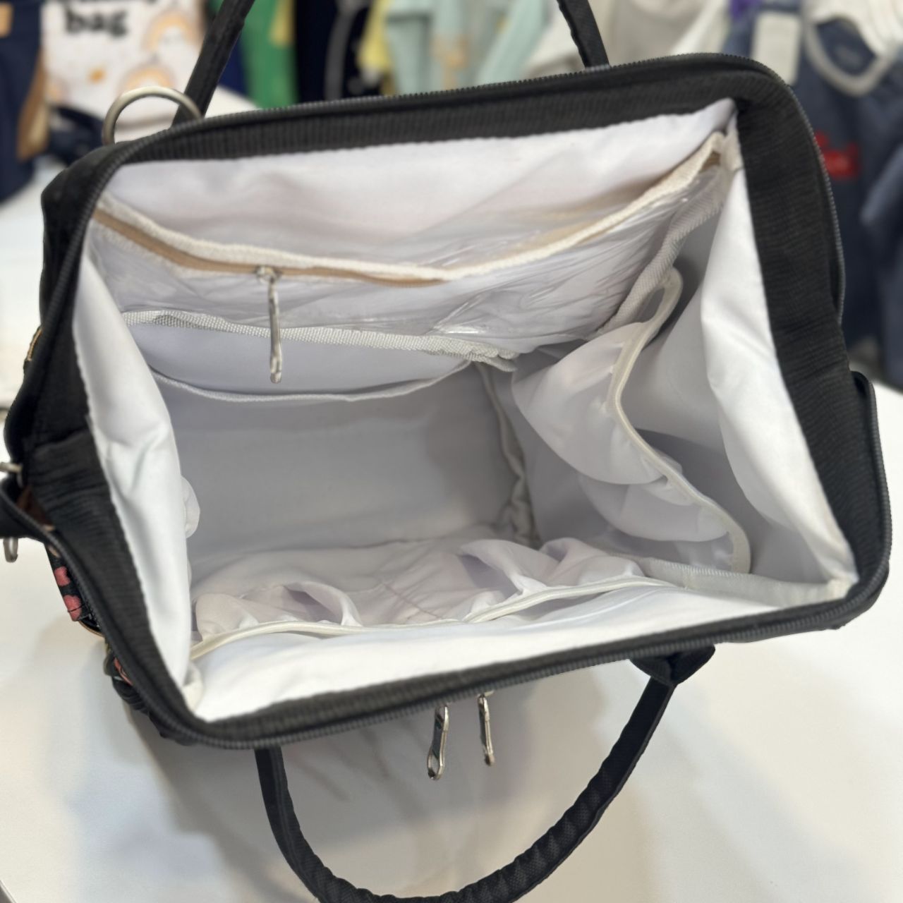 یک جیب در جلوی ساک برای شیشه شیر که عایق حرارتی نیز می‌باشد